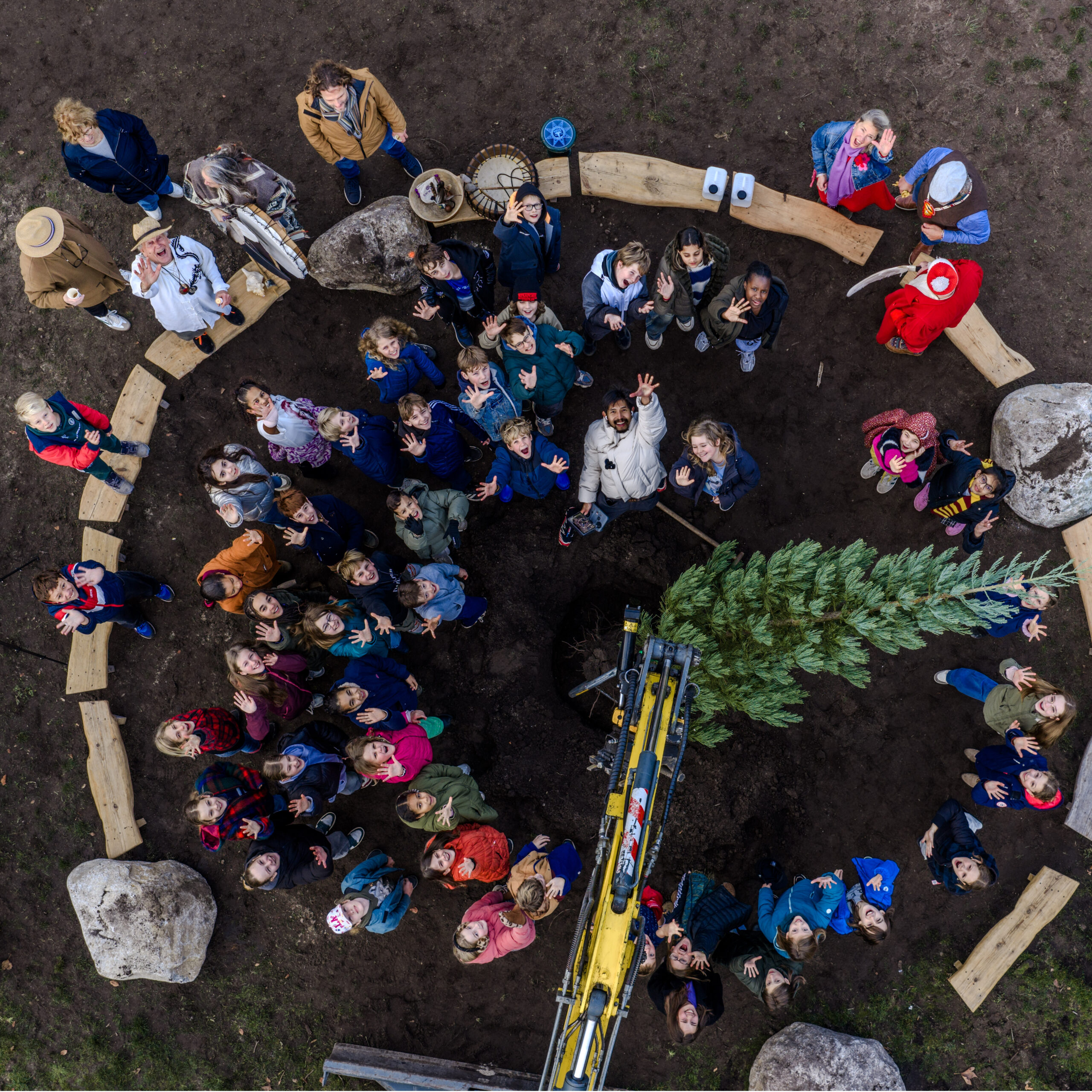 De Vredesboom een Mammoetboom (Sequoia giganticum) kunnen in Californië waar ze van nature voorkomen maar liefst 3000 jaar oud worden en bijna 100 meter hoog worden. We planten een zaadje voor de verre toekomst. Een boom om ons te herinneren dat VREDE mogelijk is en waar het fijn schuilen is, jij SAMEN met ons!