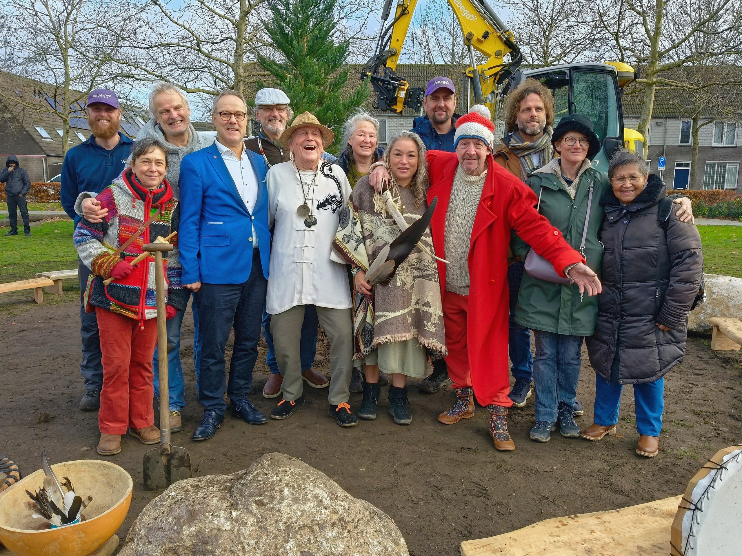 Jeremiah Wolf heeft op 8 oktober de plek van de Vredesboom bezocht met de 3 oudste klassen van basisschool Tiliander. Het was een prachtige ceremonie compleet met vredesdans.